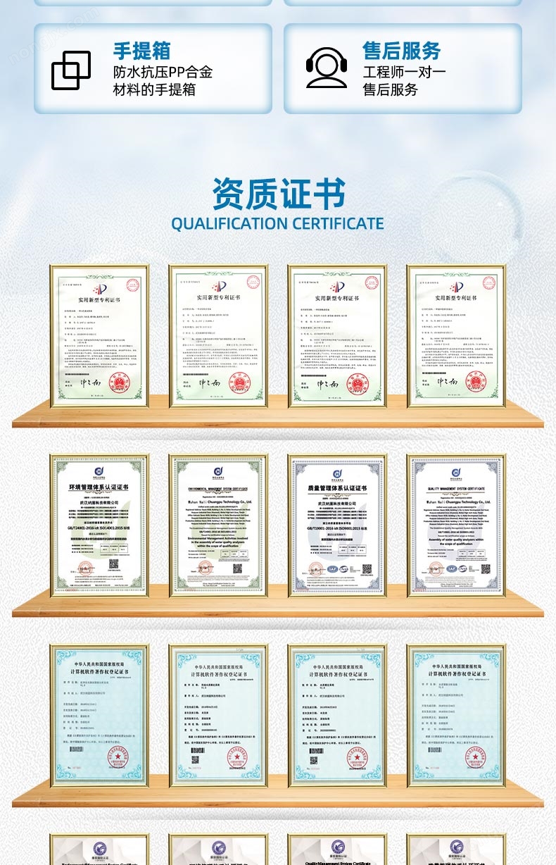 7、采用“防水抗壓PP合金材料的手提箱”。