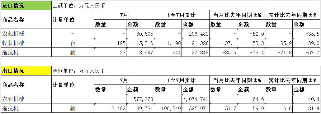 2025年1-7月:我國(guó)農(nóng)機(jī)累計(jì)出口金額同比增長(zhǎng)40.4%