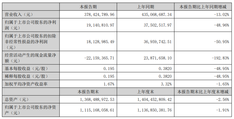 威馬農(nóng)機(jī)股份有限公司(證券簡(jiǎn)稱:威馬農(nóng)機(jī),證券代碼:301533)8月26日公布2025年半年度報(bào)告。報(bào)告顯示,上半年威馬農(nóng)機(jī)實(shí)現(xiàn)營業(yè)收入3.78億元,同比下降13.02%;歸屬于上市公司股東的凈利潤1914.08萬元,同比下降48.96%;歸屬于上市公司股東的扣除非經(jīng)常性損益的凈利潤1812.90萬元,同比下降50.95%;基本每股收益0.195元。