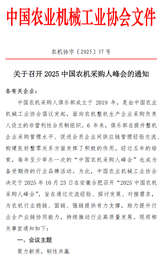 關于召開2025中國農(nóng)機采購人峰會的通知