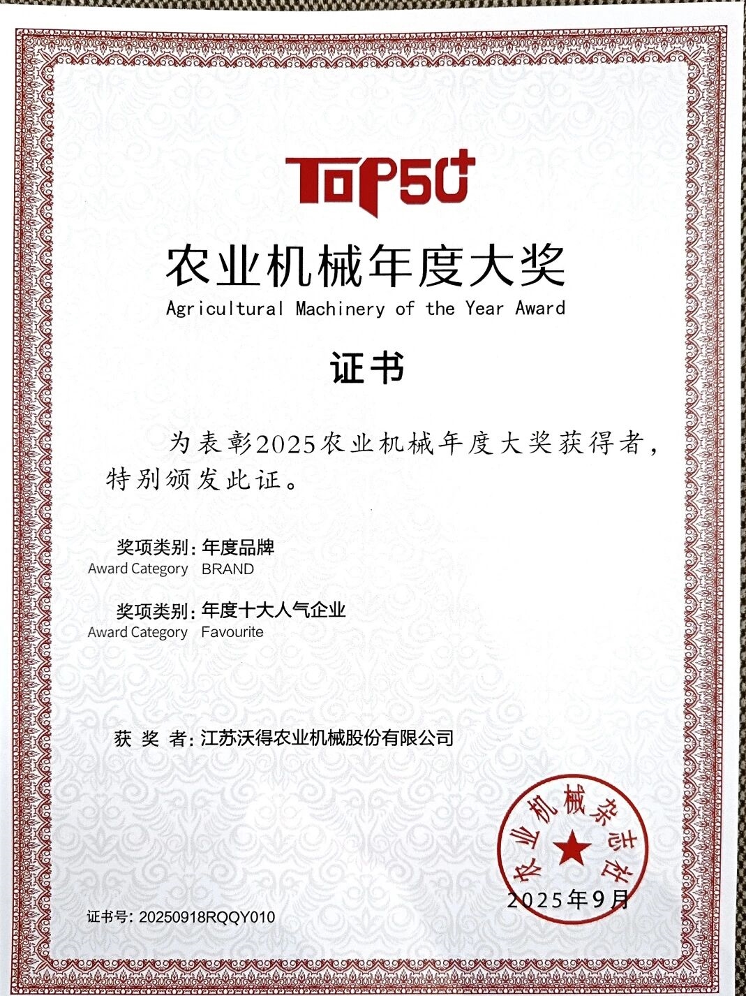 榮譽在身,使命在心。此次獲獎是行業(yè)及用戶對沃得農(nóng)機(jī)快速高質(zhì)量發(fā)展的最大的認(rèn)可與肯定。