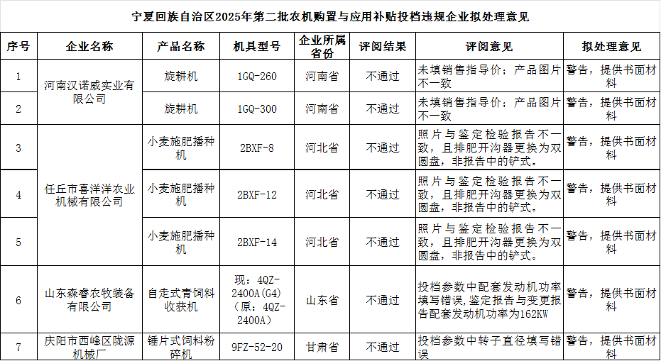 寧夏約談農(nóng)機(jī)購(gòu)置與應(yīng)用補(bǔ)貼第三批投檔違規(guī)企業(yè)