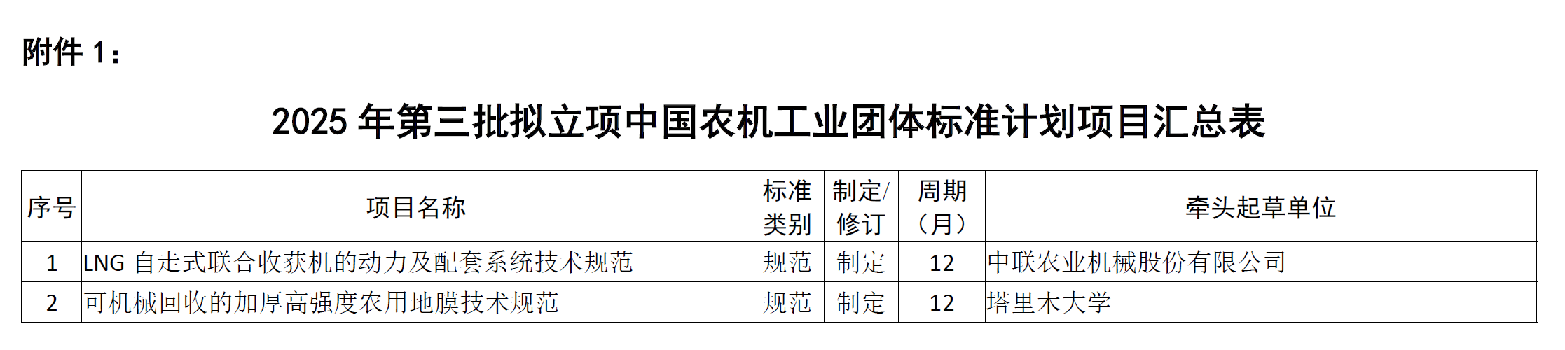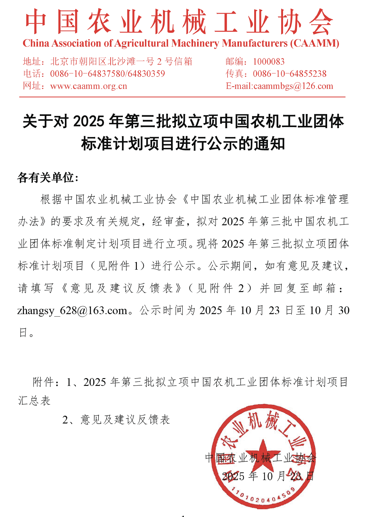 關(guān)于對2025年第三批擬立項中國農(nóng)機(jī)工業(yè)團(tuán)體標(biāo)準(zhǔn)計劃項目進(jìn)行公示的通知