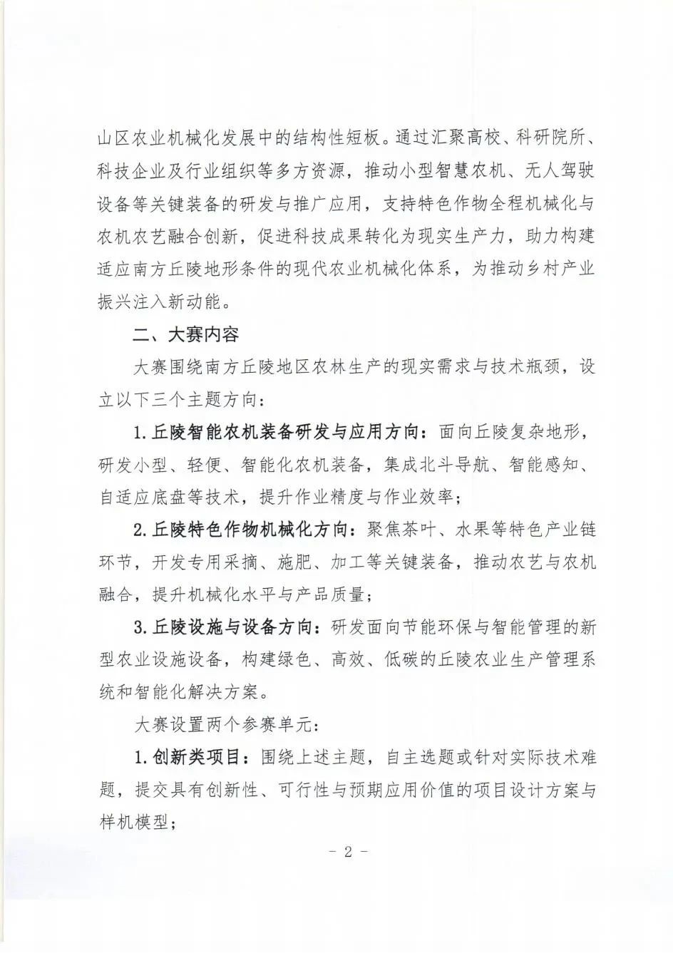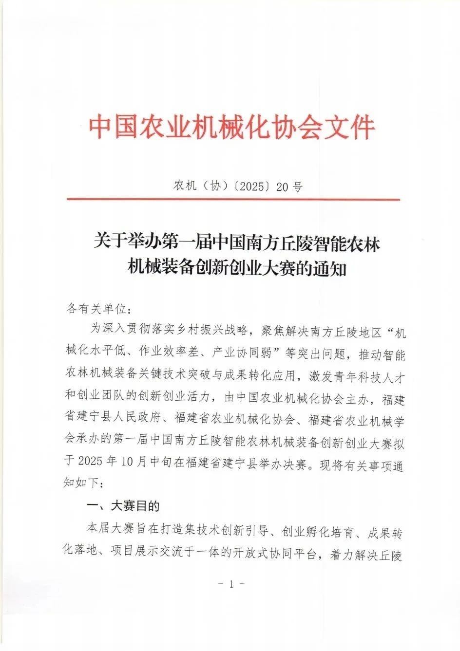 關(guān)于舉辦第一屆中國(guó)南方丘陵智能農(nóng)林機(jī)械裝備創(chuàng)新創(chuàng)業(yè)大賽的通知